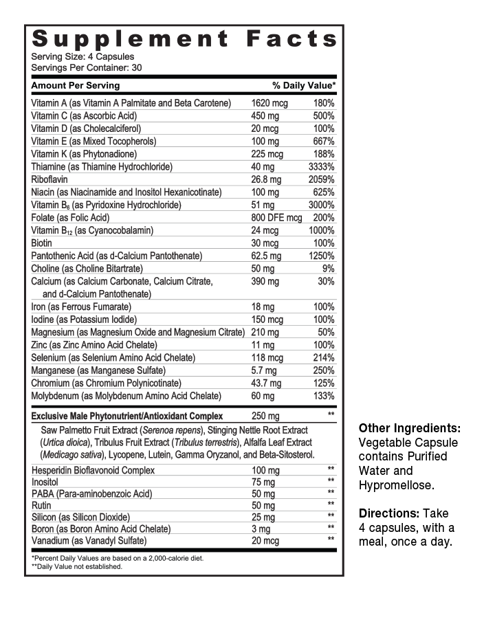 A daily multi-vitamin that supports immune health and contains specially targeted nutrition supporting prostate and testosterone levels.*