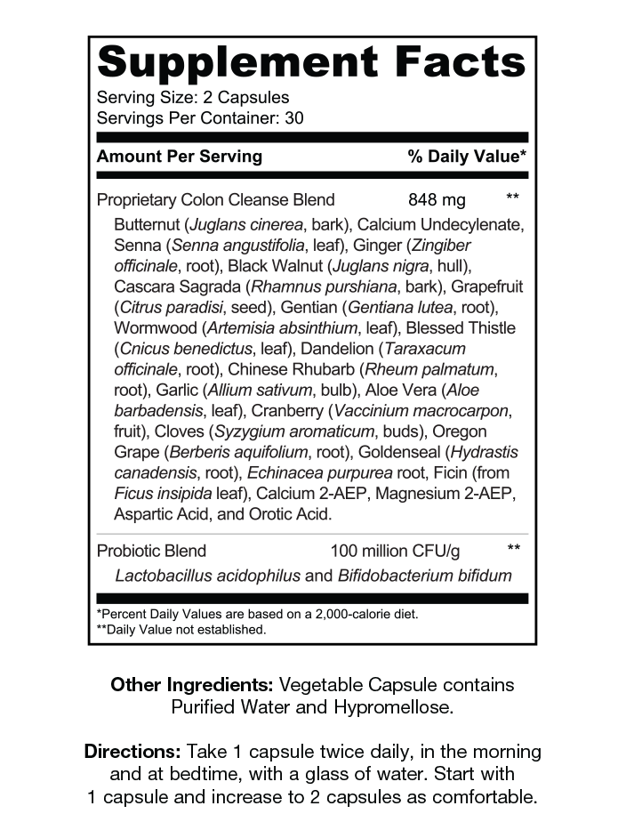 Supports cleansing and detoxification of the inner body and colon, promotes regular elimination, and helps reduce bloating.*